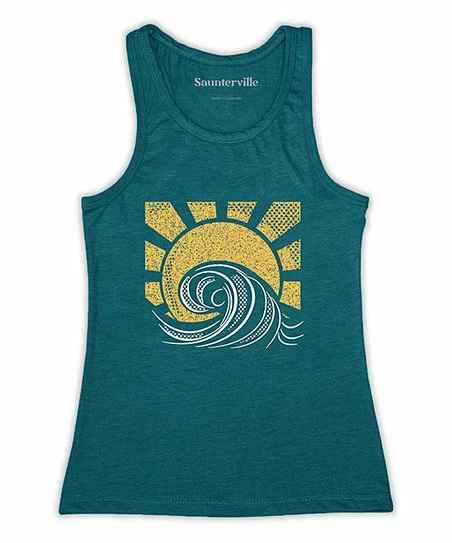 A comfortable cotton-blend tank featuring a beachy graphic and racerback design.