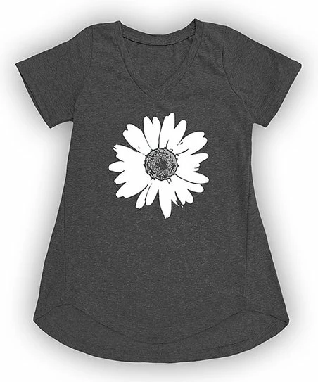 Achieve that easy-chic look with this casual, flowy tee boasting a flattering v-neckline and an artistic daisy graphic.
