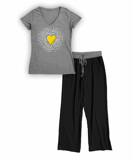- Includes one heather gray v-neck tee and one pair of black and gray pajama bottoms (two pieces total)