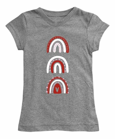Fitted tee featuring a rainbow and heart graphic printed on a cotton blend.