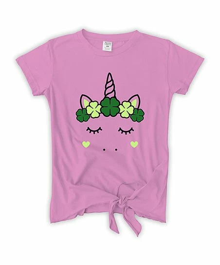 Fill out your youngsterβs casual closet with this charming tee that flaunts a tie-front hem finished with soft and breathable cotton-blend fabric.