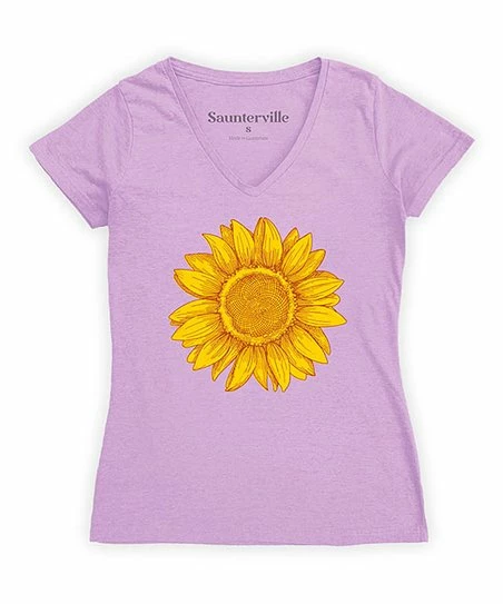 Jazz up your casual wear with this comfy cotton-blend tee that sports a v-neckline and a sunny graphic.