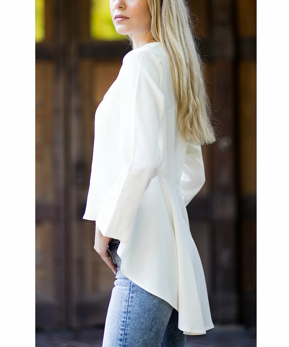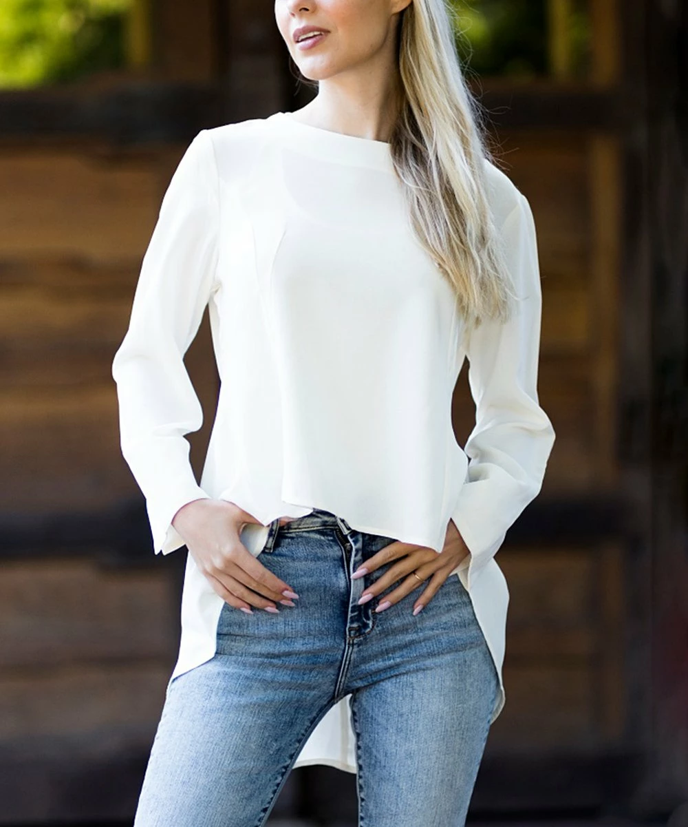 Dare to stun in this top boasting a dramatic hi-low hem that adds an elevated touch to your favorite skinny jeans.