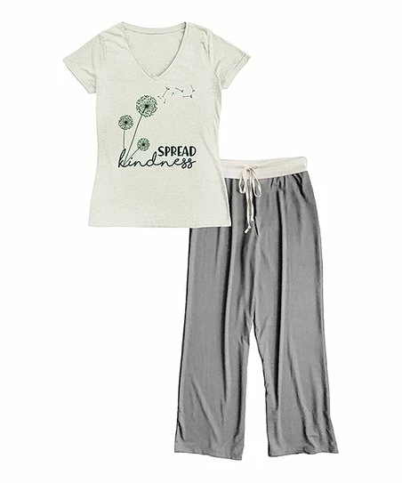 - Includes white tee and gray pajama pants (two pieces total)